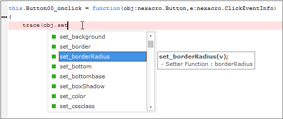 }Based on the input type value, Nexacro Studio supports the Intellisense function.