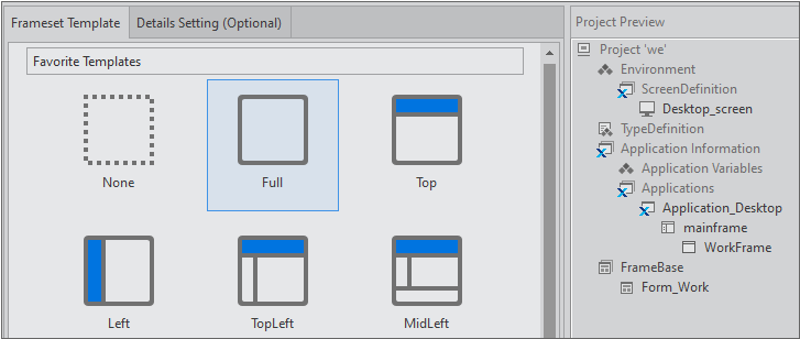 Create a new project. Select the Full type from Frameset Template.