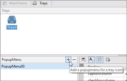 "PopupMenu00" is the PopupMenu component id value to be created in the next step. It makes the menu appear when right-clicking on the tray.
