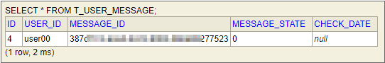 If messages are sent while the app is not in operation, those messages will be saved to the T_USER_MESSAGE table of the database. if the value of the MESSAGE_STATE column is 0, it means that the messages have not been reached the user.