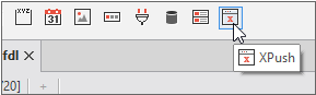 Add an XPush object by dragging and dropping it from the component toolbar onto the Form design pane. Like a Dataset, the object will appear in the Invisible Object pane.