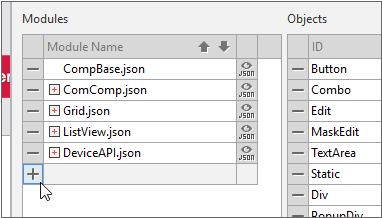 Choose [TypeDefinition > Objects] in the Project Explorer to open a window that allows you to add a module.