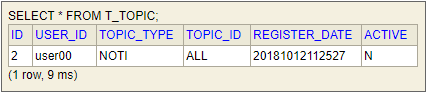 Once a topic is registered, reliable messaging begins. You can check the registered topic in the T_TOPIC table of the database.