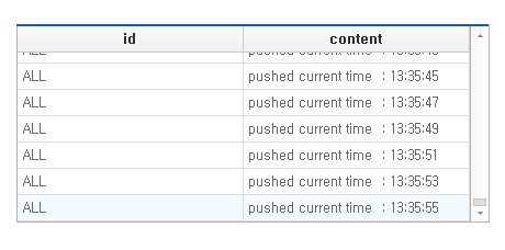 Upon launching the app, messages will be received after the X-PUSH server is connected within the onload event. You can see that the Grid will display messages in real time.