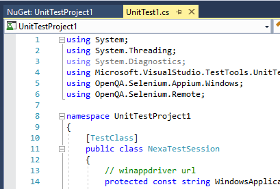Select the menu [Project > Manage NuGet Package] and then enter "Appium" in the search window to check the Appium WebDriver library in the search results. Click the [Install] button to install the library.