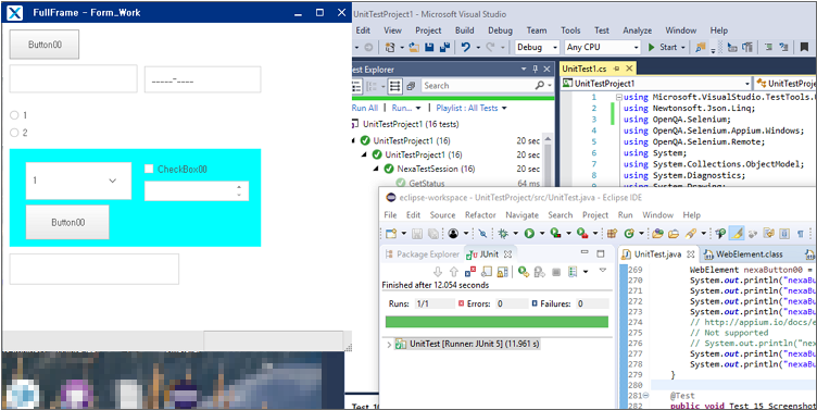 The WinAppDriver linkage function uses the UIAutomation interface provided by the Nexacro to read or write properties of apps running in NRE and to support methodological execution by specifying parameters. You can write unit tests and test using UI automation testing tools, such as Selenium.