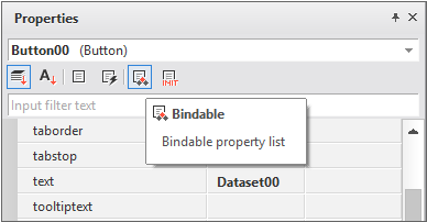 Formを除くすべてのコンポーネントやDatasetには User Property項目を追加することができます。 Propertiesウィンドウからコンテキストメニューを呼び出して、[Add User Property]を選択します。