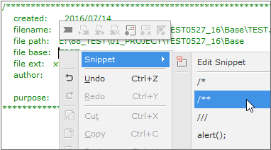 ユーザーの入力に応じて、コードの自動補完機能を提供します。予め入力したテンプレートコードをスクリプトやCSSの編集時にスニペットとして使用することもできます。また、スクリプトの入力時に誤って入力されたコードを検出する機能もサポートします。