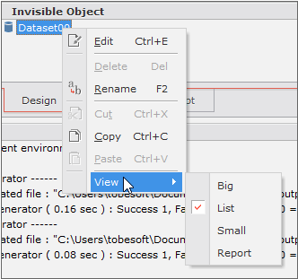 Invisible Objectウィンドウが表示されない場合、Design画面のコンテキストメニューを呼び出して [Show Invisible Object Area]を選択すると、Invisible Objectウィンドウを開くことができます。