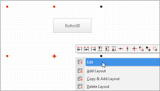 レイアウトを編集できるコンポーネントは、基本的に「default」という名前のレイアウトを持ちます。Formの作成時にレイアウトを追加することができ、生成した後は、マウス右クリックして表示されるメニューからレイアウトを追加/削除することができます。
