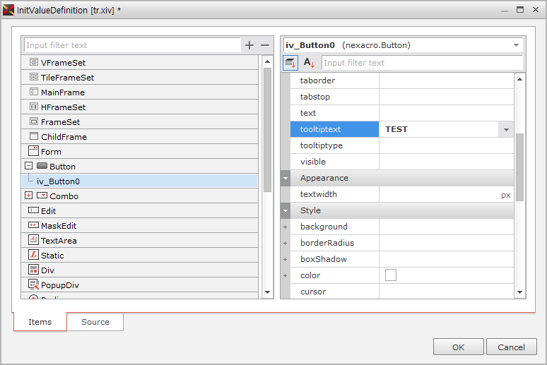 追加されたInitValue項目は、XML形式のファイルとして保存されます。[Source]タブを選択すると、作成されたファイルを確認することができます。