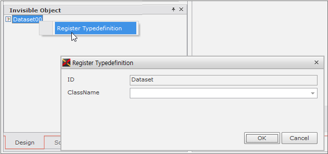 TypeDefinitionに登録されていないコンポーネントをマウス右ボタンでクリックすると、Register TypeDefinitionというポップアップメニューが表示されます。該当項目を選択して表示されるポップアップウィンドウでClassNameを選択すると、TypeDefinitionが登録されます。