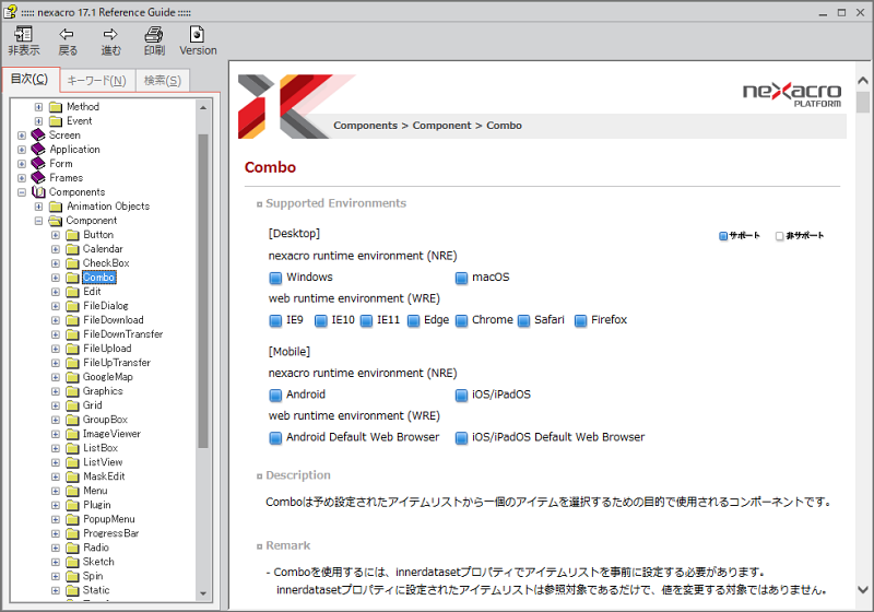 help | - nexacro platformヘルプフォルダ コンパイルされたHTMLヘルプファイル(compiled html help、CHM)で提供します。 |