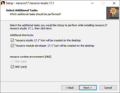 デスクトップにショートカットアイコンを作成する場合は、[created on the desktop]項目にチェックを入れます。64ビットOSを使用する場合は、64ビットをサポートするNREをインストールすることができます。64ビットnexaroブラウザをインストールするには、[NRE (x64)]の項目をチェックします。