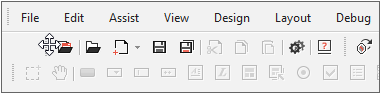 nexacro studioのメニューバーとツールバーは、プロジェクトの状態、開いているファイルなどに応じて、必要な項目が表示されます。