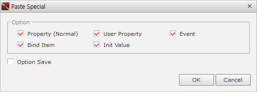 Paste Specialウィンドウで貼り付ける情報のみチェックしてコンポーネントを貼り付けます。チェックした情報を維持したい場合は、「Option Save」をチェックします。