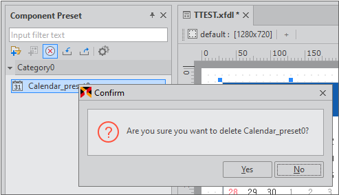 カテゴリー、プリセットの設定はファイルの形にエクスポートして、他のプロジェクトや他のユーザーが利用できます。「Component Preset」パネルの上部のツールバーの「Export」ボタンをクリックすると、ファイル(xpreset拡張子)として保存します。