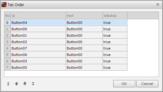 Tab Order外のリストに表示される情報(id、text、tabstop)は、Tab Order Listウィンドウで変更することができません。