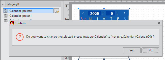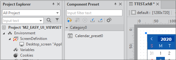 「Component Preset」パネルが表示され、デフォルトカテゴリーにプリセットが登録されます。
