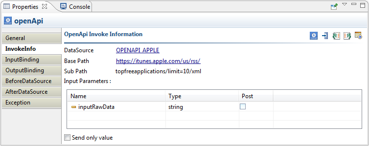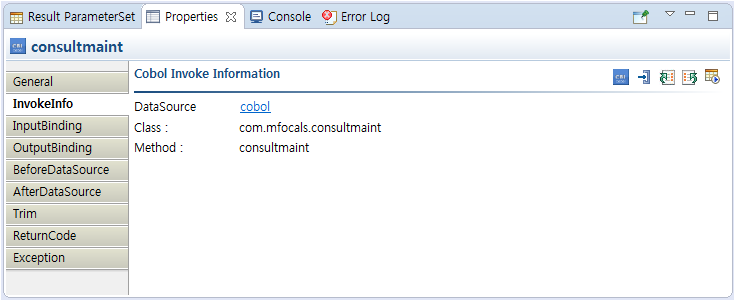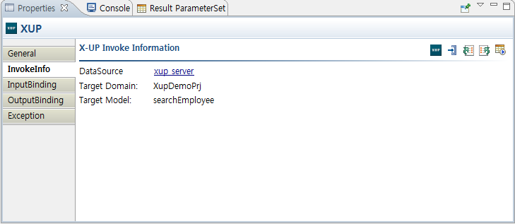 X-UP 에디터 위에 배치된 Invoke를 클릭하면 Properties View를 통해 해당 Invoke에 대한 정보를 볼 수 있습니다. 아래는 모든 Invoke의 공통 프로퍼티입니다.
