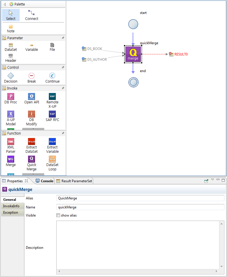 Quick Merge Function은 두개의 데이터셋을 가지고 새로운 데이터셋을 생성하기 위한 컴포넌트 입니다.