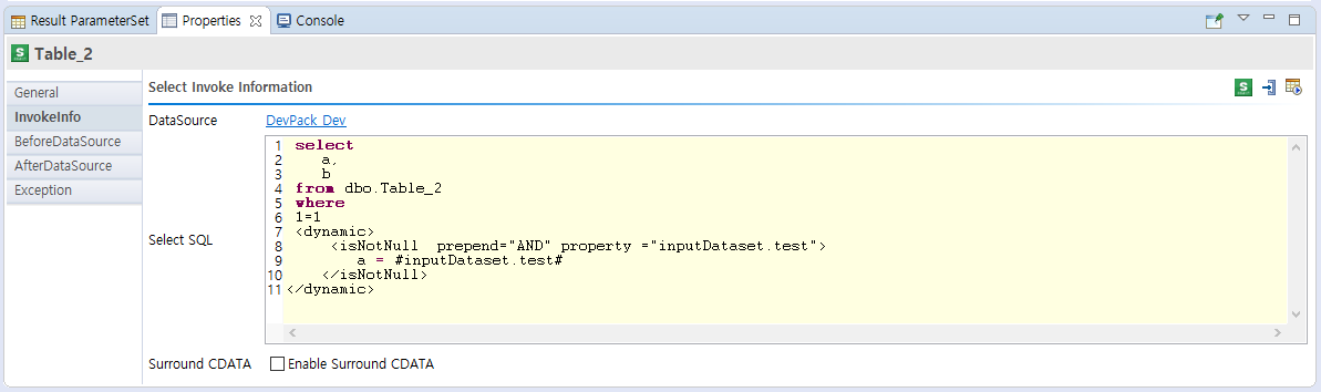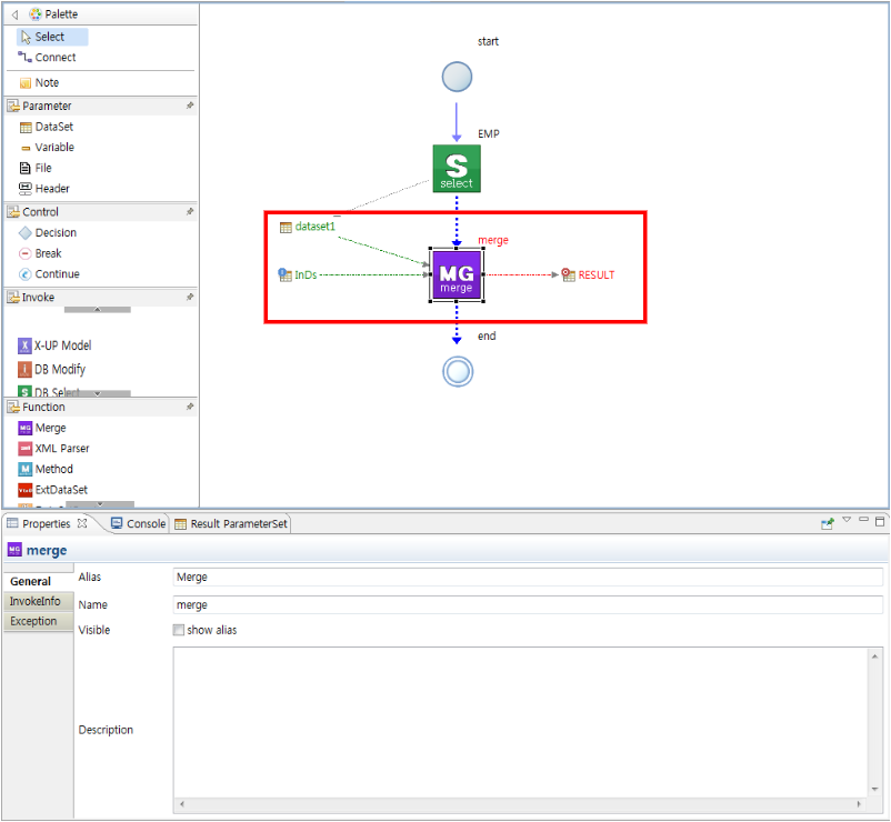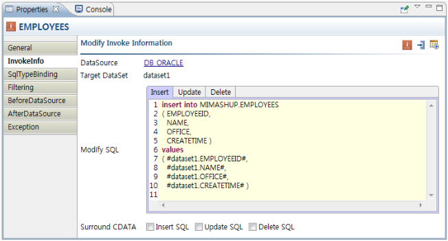 InvokeInfo : Merge를 수행할 SQL 쿼리문에 대한 정보를 출력합니다.