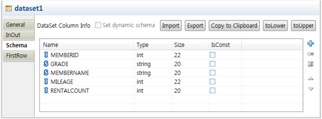 예를 들어, Dataset의 column이 4개라면 4개의 Variables가 Output으로 출력됩니다. 각각의 Variable 이름, 타입, 크기, 값은 Dataset 각각Column이름, 타입, 크기, 값으로 동일합니다.