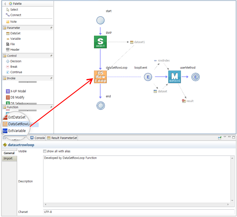 DataSet Loop | DataSet의 특정 Row값에 대하여 반복적 제어문 처리를 할 수 있습니다. |
