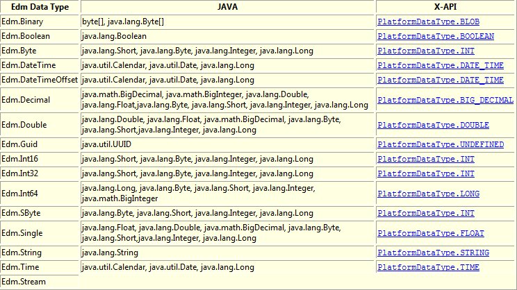 string / int / float / long / boolean / bigdecimal / date / time / datetime / blob