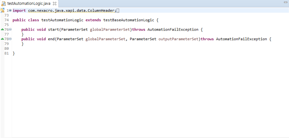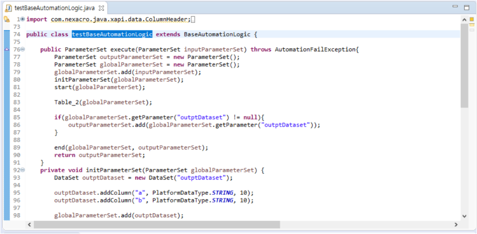 Xup project에서 모델(xam)을 생성하면 AutomationLogic.java파일, BaseAutomationLogic.java파일 2개가 생성됩니다. xam에는 모델, 파라미터 등 editor상의 모든 정보가 저장됩니다. AutomationLogic.java파일은 사용자가 직접 자바 코딩을 할 수 있는 공간으로 BaseAutomationLogic.java를 상속 받고 있습니다. BaseAutomationLogic.java는 xam파일을 기반으로 저장하거나, Refresh할 때 자동으로 재생성됩니다. 때문에 BaseAutomationLogic.java에 코딩을 하면, xam 파일을 저장 할 때 BaseAutomationLogic.java를 재생성하기 때문에 직접 수정한 코딩이 사라지게 됩니다.