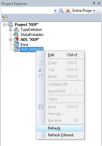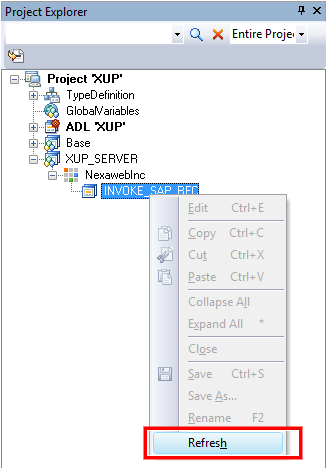 Project Explorer 에서 해당 Service를 Refresh하여 X-UP서버의 모델 리스트를 가져옵니다.