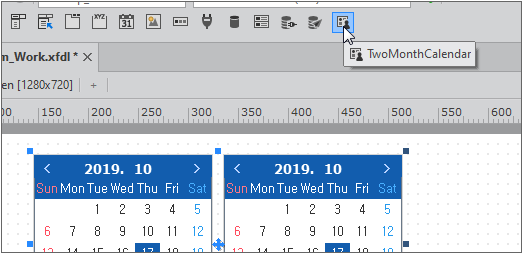 툴바에서 Calendar 컴포넌트를 선택하고 화면에 배치합니다.