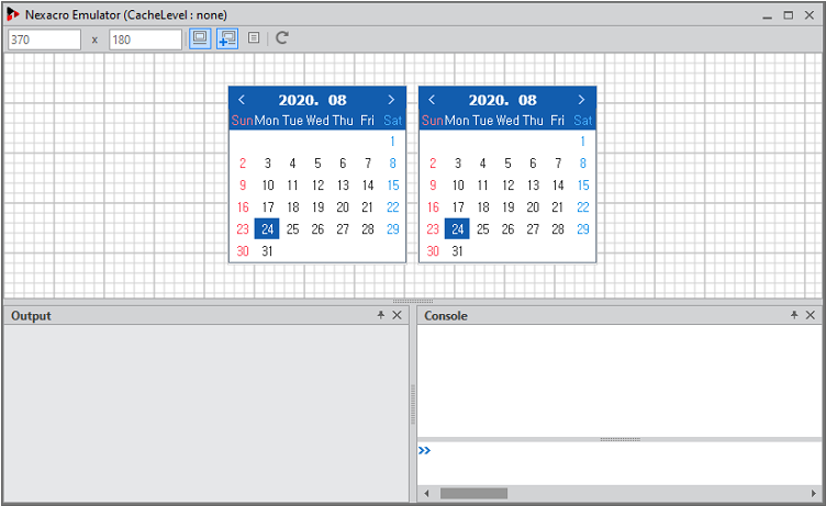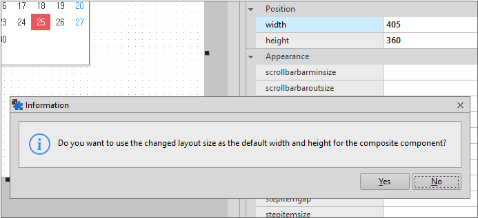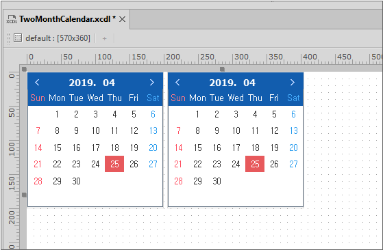 Form 크기는 컴포지트 컴포넌트의 용도에 따라 달라질 수 있습니다. 예제에서는 2개의 Calendar 컴포넌트의 크기에 딱 맞게 설정했습니다.