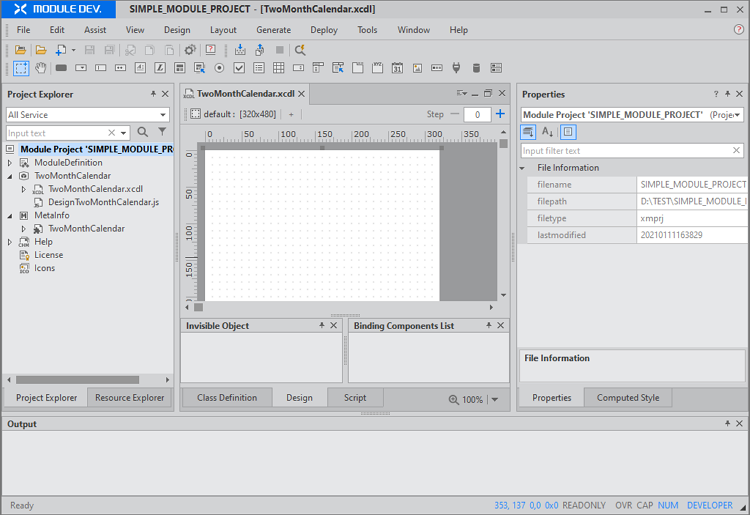 모듈을 만드는 기본 과정은 간단합니다. 새로운 프로젝트를 생성하고 화면을 구성하고 Deploy 단계에서 배포할 수 있는 파일로 생성합니다. 좀 더 구체적인 모듈을 만들기 위해서는 기능을 추가하고 여러 설정을 조정해주어야 합니다. 이번 장에서는 모듈(Composite Component)을 만드는 기본적인 단계를 가볍게 살펴봅니다.