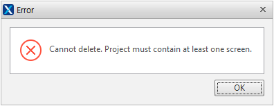 Screen 정보, Variable, Cookie, HTTP Header 정보를 관리합니다. 프로젝트는 하나 이상의 Screen 정보를 포함해야 합니다. Screen 정보가 하나인 경우 이를 삭제하려 하면 아래와 같은 경고 메시지를 보여주고 삭제하지 않습니다.
