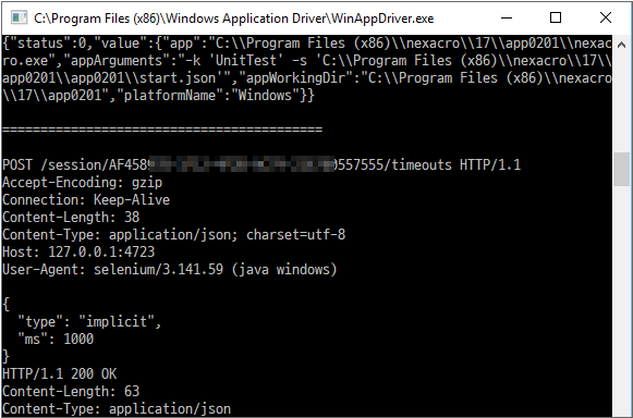 // WinAppDriver Session Create
