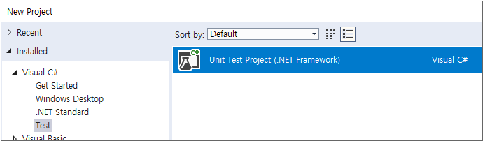 새로운 프로젝트 만들기에서 "Unit Test Project"를 선택하고 새로운 프로젝트를 생성합니다.