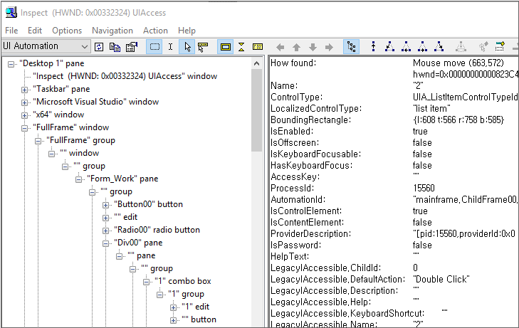 엘리먼트의 UIA 인터페이스 속성값 확인하기