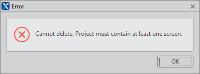 Screen 정보, Variable, Cookie, HTTP Header 정보를 관리합니다. 프로젝트는 하나 이상의 Screen 정보를 포함해야 합니다. Screen 정보가 하나인 경우 이를 삭제하려 하면 아래와 같은 경고 메시지를 보여주고 삭제하지 않습니다.