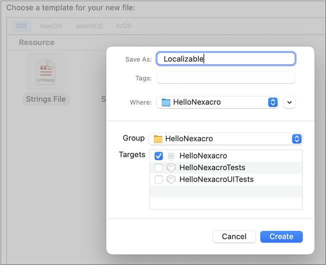 "Save As"에 파일명을 'Localizable'로 입력합니다.