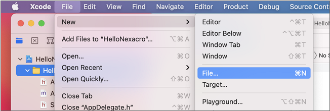 넥사크로로 개발된 앱을 담을 iOS 프로젝트를 생성하고 기본 환경을 설정해야 합니다. 새로운 프로젝트는 아래 메뉴에서 생성할 수 있습니다.