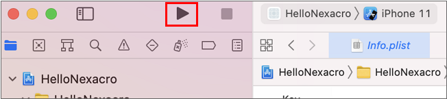 1. Run 기능을 수행합니다. 화면 상단의 아이콘을 직접 클릭하거나 Xcode 메뉴에서 실행할 수 있습니다.