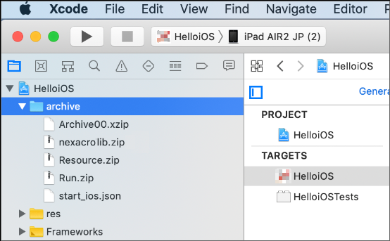 Xcode의 프로젝트 탐색기에서 archive 폴더 및 파일이 정상적으로 추가되었는지 확인합니다.