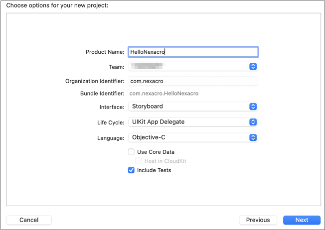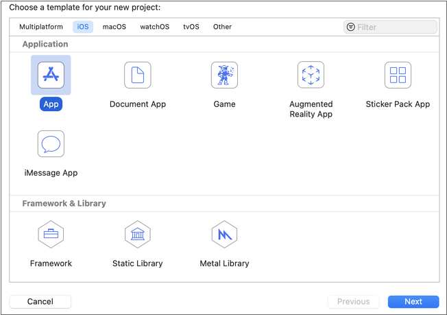 Xcode에서 아래와 같은 절차에 따라 iOS용 앱 프로젝트를 개발합니다. 앱 프로젝트를 진행하기 전에 넥사크로 스튜디오에서 만든 아카이브 파일은 지정된 경로에 위치해야 합니다.