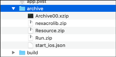 앱 실행에 필요한 파일은 모듈, 소스, 리소스 그리고 Run.zip과 start_ios.json으로 넥사크로 스튜디오에서 Packing(Archive&Update)을 수행하여 얻을 수 있습니다. 이 파일을 Xcode 프로젝트에서 archive 폴더에 적재한 후 앱을 빌드하면 네트워크 연결 없이도 앱을 실행할 수 있습니다.