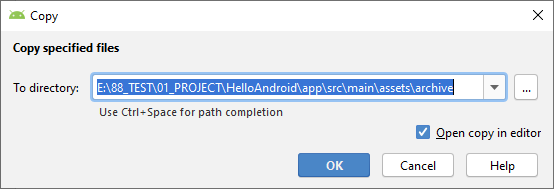 Copy module, source and resource files to the [project > app > src > main > assets > archive] directory. You can copy and paste files directly from File Explorer into Android Studio.