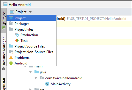 If you want to copy the library files to each designated location in your actual project, you should select the Project view option from the dropdown at the top of the Project window. When you install Android Studio, the view mode is set to Android by default. You should change the view mode to Project to see the actual file structure of a project.