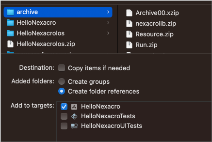 Select the archive folder and choose "Create folder references" as an "Added folders" option. Then, click the Add button.