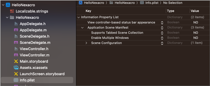 Create the SceneDelegate.h and SceneDelegate.m files in the project folder. After editing the files, add them to the project as follows.