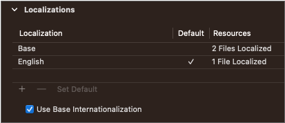 To support languages other than English, navigate to the menu [PROJECT > Info > Localizations] and click + button to add another language.